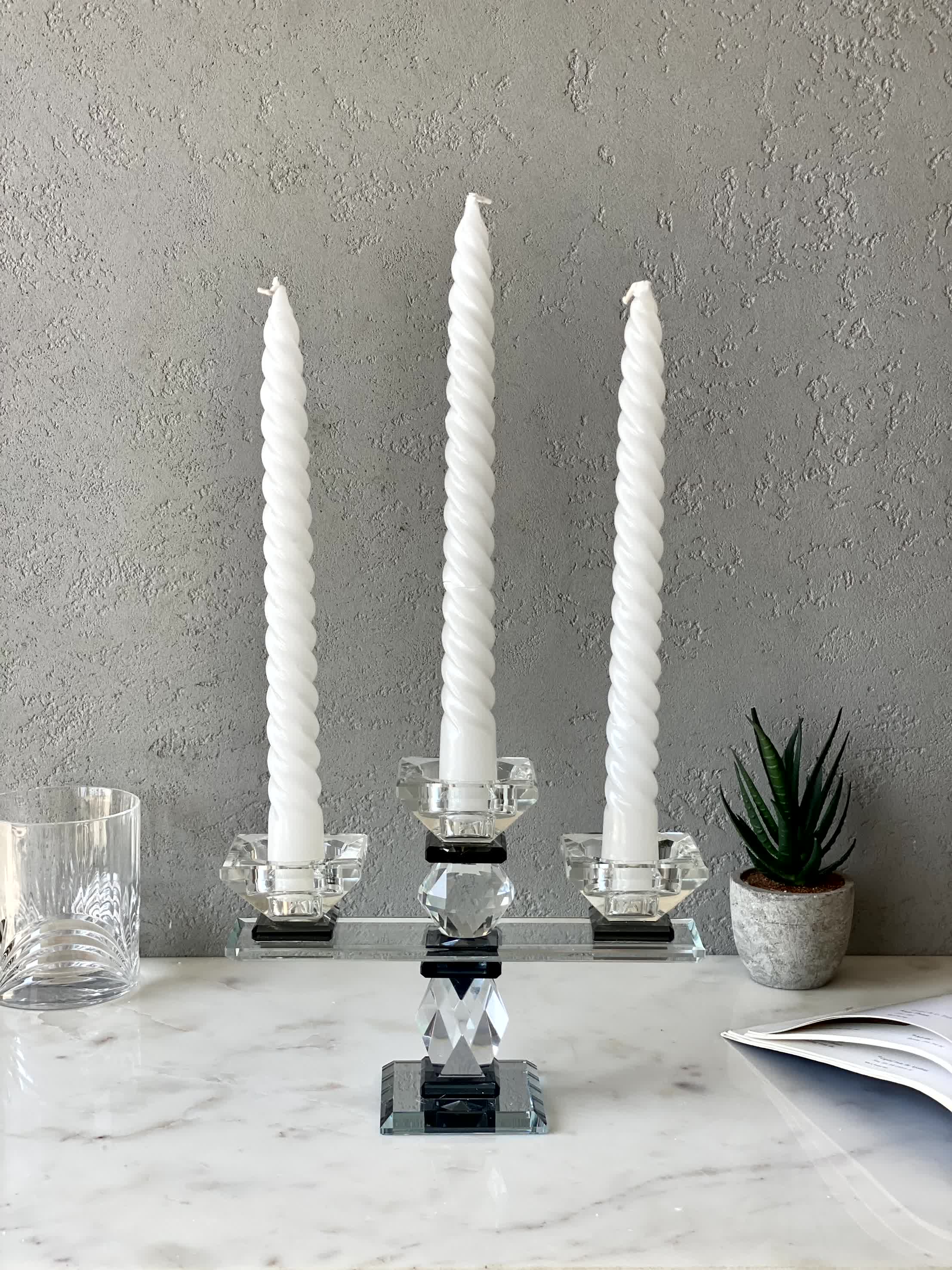 Three Arm Crystal Candle Holders - Black