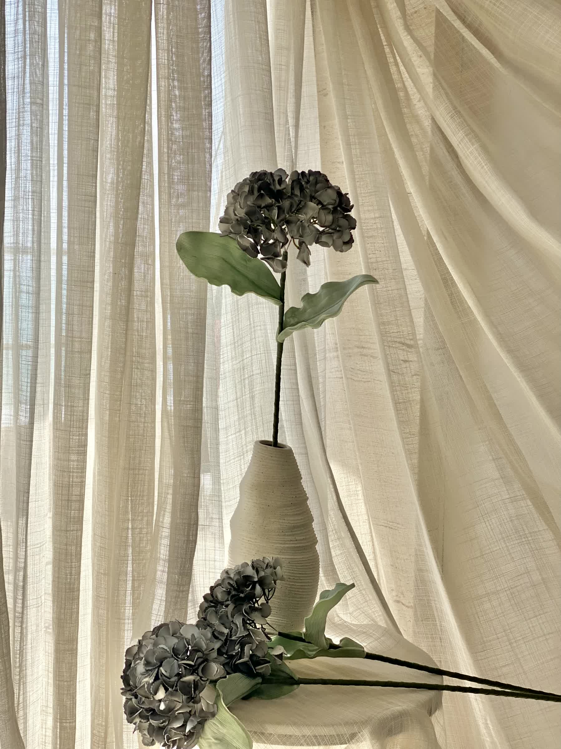 Artificial Hydrangea Flower Stem - Grey Ombre (One Stem)