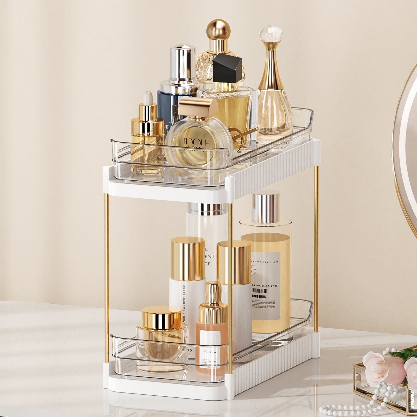 Two Tier Pullout Storage Rack - White